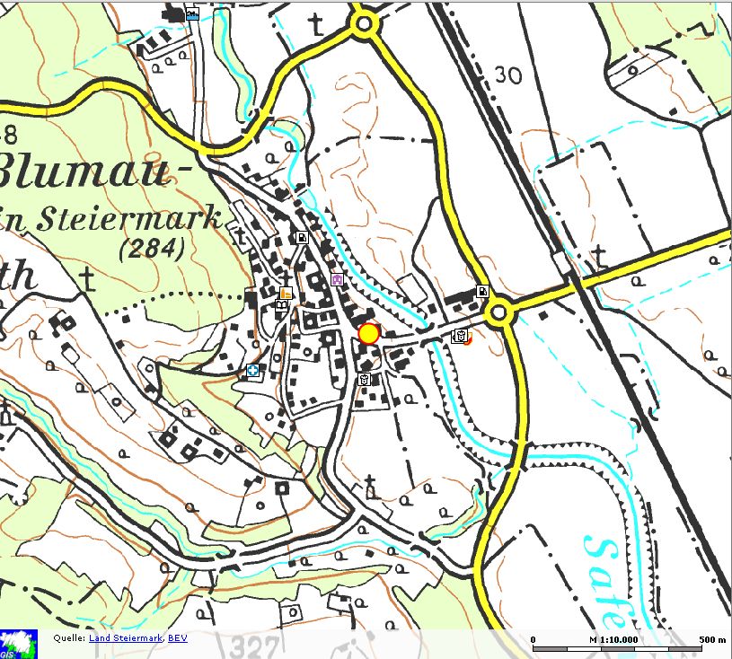 Seite vorlesenVorlesenVorlesenSeite druckenDruckenWeitere InfosInfosFeedback verschicken Luftgütestandort Bad Blumau Winter 2007 Kartengrundlagen: GIS Steiermark und BEV Seehöhe: 271 m UTM 33: x=579947 UTM 33: y=5218402 Standortgemeinde: Bad Blumau
